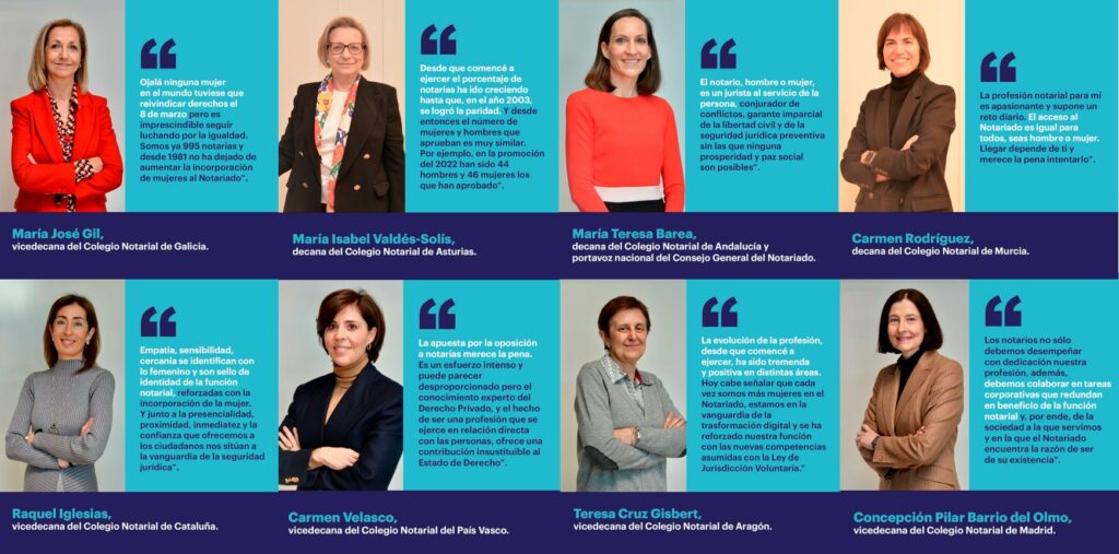 Con motivo de la celebración del Día Internacional de la Mujer, el pasado 8 de marzo se pusieron en marcha desde el Consejo General del Notariado (CGN) y los colegios notariales diferentes acciones que ponían en valor el papel de las mujeres notarías y su presencia cada vez mayor en todos los ámbitos, desde las juntas directivas a las oposiciones.