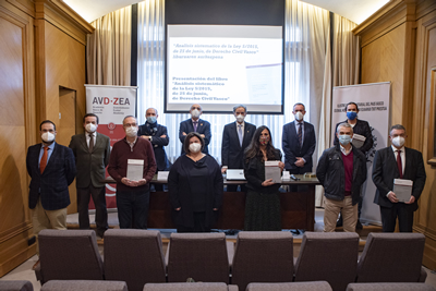 La presentación del libro se realizó presencial y virtualmente en diciembre, en la sala de conferencias del Colegio. El decano, Diego Granados, fue el encargado de abrir el reducido acto, junto al coordinador de la publicación, el notario y presidente de la AVD-ZEA, Andrés Urrutia, y los directores de la obra, los abogados Francisco Lledó Yagüe y Óscar Monje Balmaseda. Al encuentro acudieron, además, ocho de los autores participantes en el análisis de dicha ley.