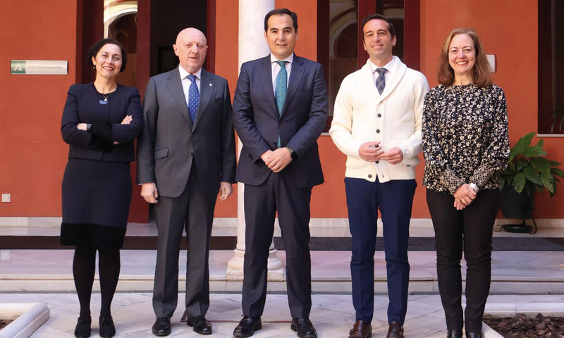 El decano del Colegio Notarial de Andalucía, Manuel Seda, la censora cuarta y la vicesecretaria de Relaciones Institucionales de su junta directiva, Itziar Ramos y Carmen Vela -respectivamente-, mantuvieron el pasado 13 de febrero un encuentro institucional con el consejero de Justicia, Administración Local y Función Pública de la Junta de Andalucía, José Antonio Nieto, y el director general de Justicia Juvenil y Cooperación, Esteban Rondón.
