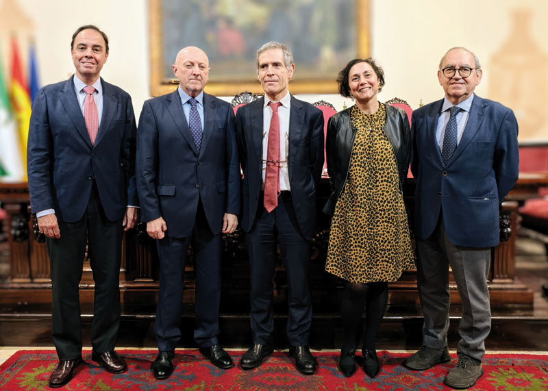 La sesión estuvo presidida por el decano del colegio andaluz, Manuel Seda, quien estuvo acompañado por el presidente, el vicepresidente y la secretaria de la Academia Sevillana del Notariado: Francisco Aranguren, Carlos María García Campuzano y Carmen Vela, respectivamente.