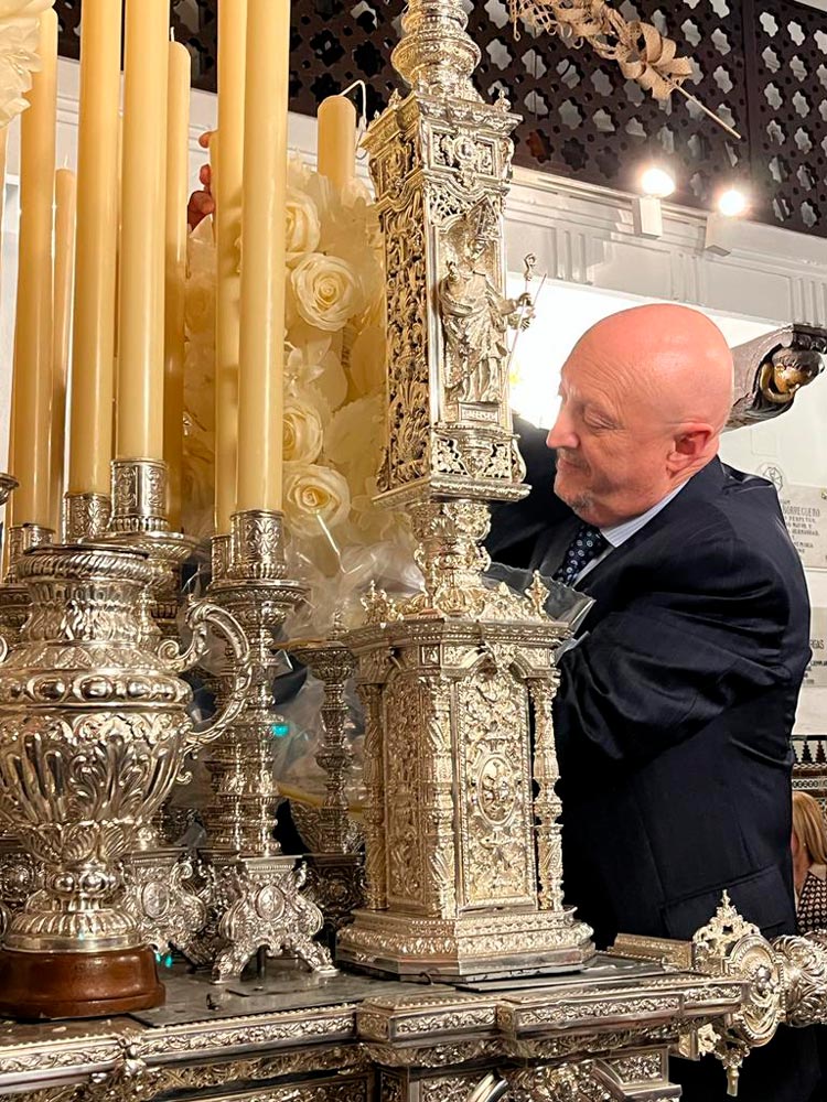 La Hermandad de Montesión de Sevilla invitó al Colegio Notarial de Andalucía, representado por el vicedecano Manuel Seda, al tradicional acto de fundición de la cera del paso de la Virgen del Rosario.