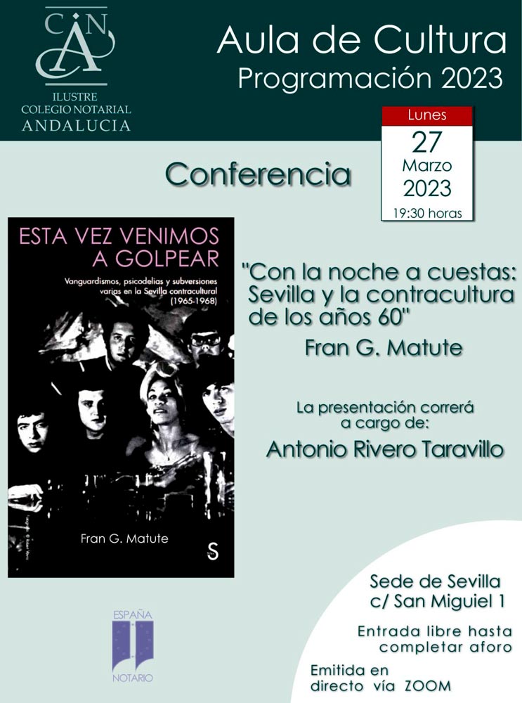 En el Aula de Cultura del Colegio Notarial de Andalucía tenía lugar a finales de marzo la presentación del libro Esta vez venimos a golpear. Vanguardismos, psicodelias y subversiones varias en la Sevilla contracultural (1968-1968).