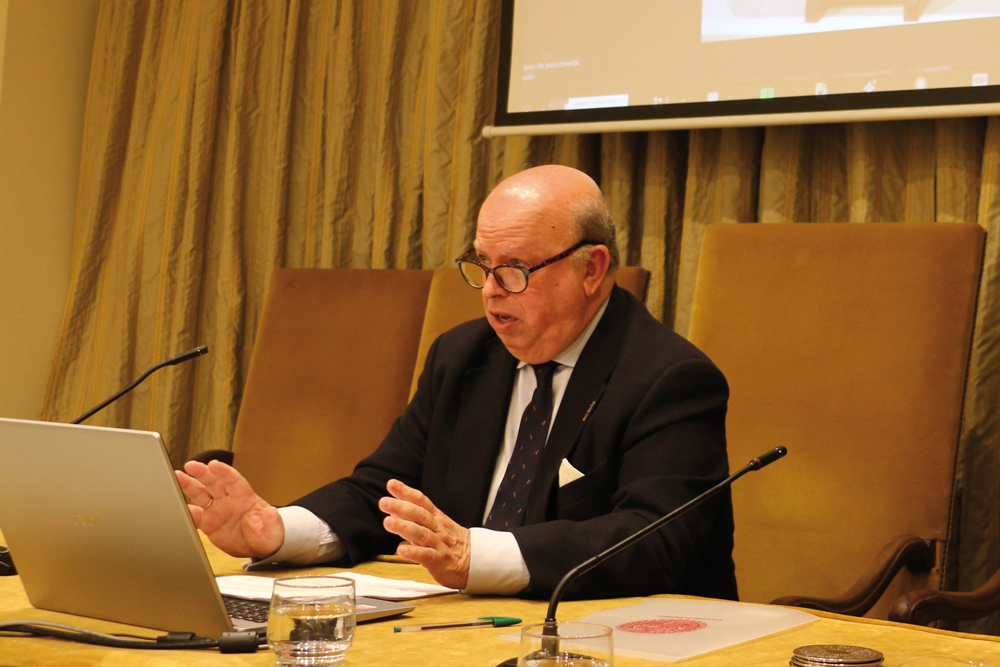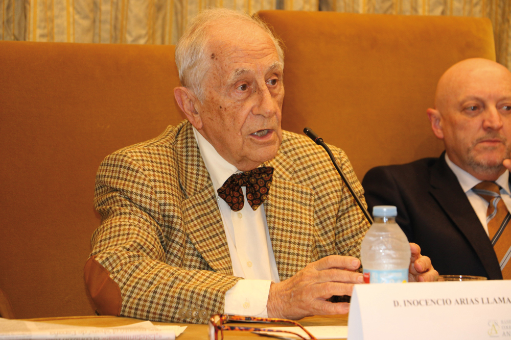 El diplomático jubilado Inocencio Arias ofreció una conferencia en la sede de Sevilla del Colegio Notarial de Andalucía a mediados de enero, en la que reflexionó sobre la imagen actual de España en la esfera internacional. En la sesión acompañaron al exembajador el vicedecano del colegio andaluz, Manuel Seda; el delegado de Cultura, Francisco Aranguren; y el notario Manuel Ramos Gil.