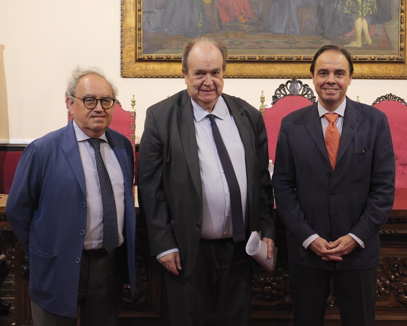 El vicedecano del Colegio Notarial de Andalucía, Manuel Seda; el presidente de la Academia Sevillana del Notariado, Francisco Aranguren; y el catedrático de Derecho Civil de la US, Francisco Capilla, inauguraron el congreso, que en su primera jornada abordó los distintos sistemas de derecho de alimentos post mortem.