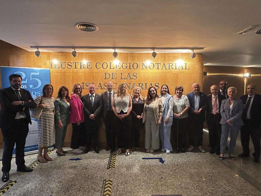 Por parte del notariado canario asistieron Alfonso Cavallé y José Antonio Riera, decano y vicedecano -respectivamente- del colegio notarial autonómico; y en representación de la Fundación Æquitas la directora, Almudena Castro-Girona; el director adjunto Francisco González, y la delegada autonómica, Julia Segura.