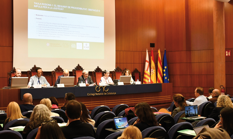 A principios de mayo, el Colegio Notarial de Cataluña organizó, en colaboración con su Centro de Mediación y Conciliación, la Generalitat de Cataluña y el Colegio de la Abogacía de Barcelona, la jornada Aspectos polémicos de la Ley de Eficiencia Procesal.