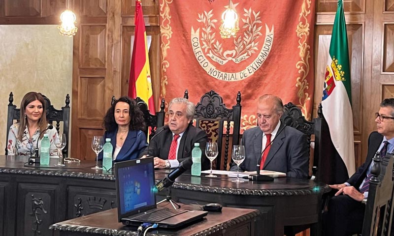 El pasado 10 de junio, el Colegio Notarial de Extremadura acogió la celebración de las II Jornadas sobre temas actuales de Seguridad Social y Derecho Laboral, organizadas por la Real Academia de Jurisprudencia y Legislación de Extremadura (RAJYLEX). El decano del colegio extremeño, Ignacio Ferrer, intervino en la inauguración junto a la directora provincial del Instituto Nacional de la Seguridad Social, Alexandra Díaz Mordillo; el presidente de la RAJYLEX, Francisco La Moneda; y la presidenta del Tribunal Superior de Justicia de Extremadura, María Félix Tena.