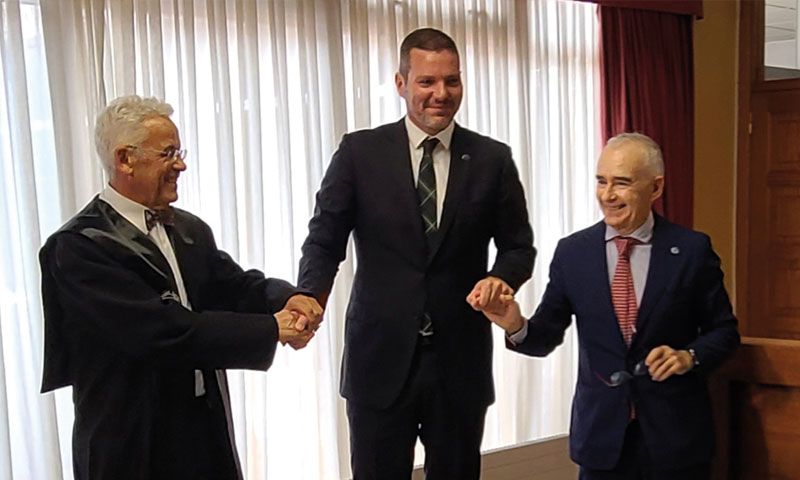 El decano del Colegio Notarial de Galicia, José María Graíño; el presidente de la Irmandade Xurídica Galega (Ixuga), Xoaquín Enrique Monteagudo; y el conselleiro de Cultura, José López Campos, firmaron el pasado 21 de junio en la Universidad de Santiago de Compostela (USC) un protocolo para impulsar el uso del gallego en las notarías.