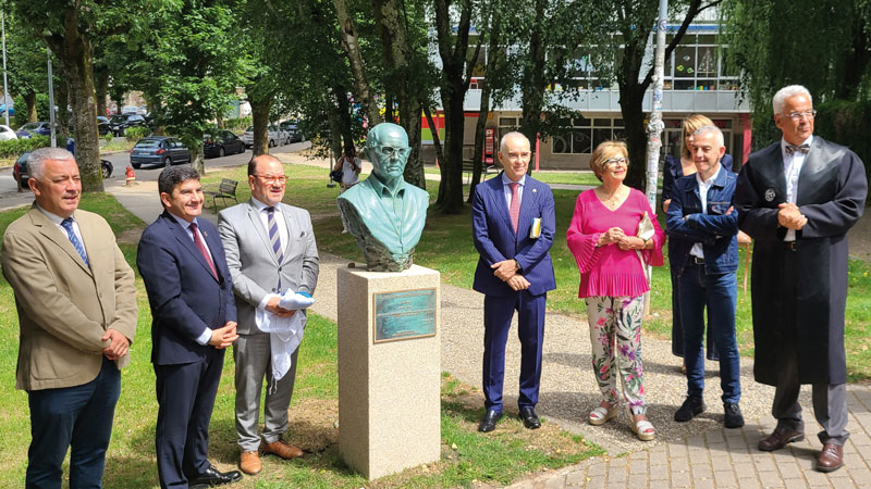 Antes de la celebración de la Asamblea de la Ixuga en la que se firmó el protocolo, los asistentes y representantes institucionales, entre los que se encontraban el delegado del Gobierno en Galicia, Pedro Blanco; el rector de la USC, Antonio López; y el secretario general de Política Lingüística de la Xunta, Valentín García; descubrieron el busto del notario Victorino Gutiérrez Aller, fallecido en 2024. Un homenaje a su labor en favor de la normalización de lengua, como pionero en el uso del gallego en su actividad notarial.