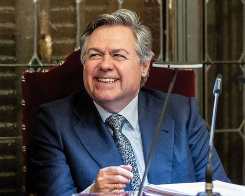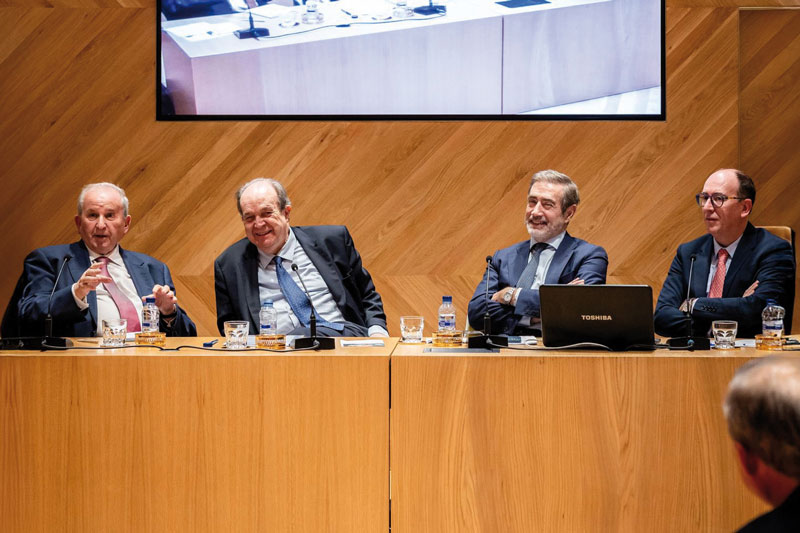 La decana del Colegio Notarial de Madrid, Concepción Pilar Barrio Del Olmo, presidió la sesión y el secretario de la Academia y decano honorario del colegio, José Aristónico García Sánchez, fue el encargado de introducir y presentar al conferenciante. En la mesa les acompañaron los notarios Ignacio Solís, Gonzalo López-Fando y Carlos Huidobro -estos dos últimos, miembros de la actual junta directiva del colegio-.