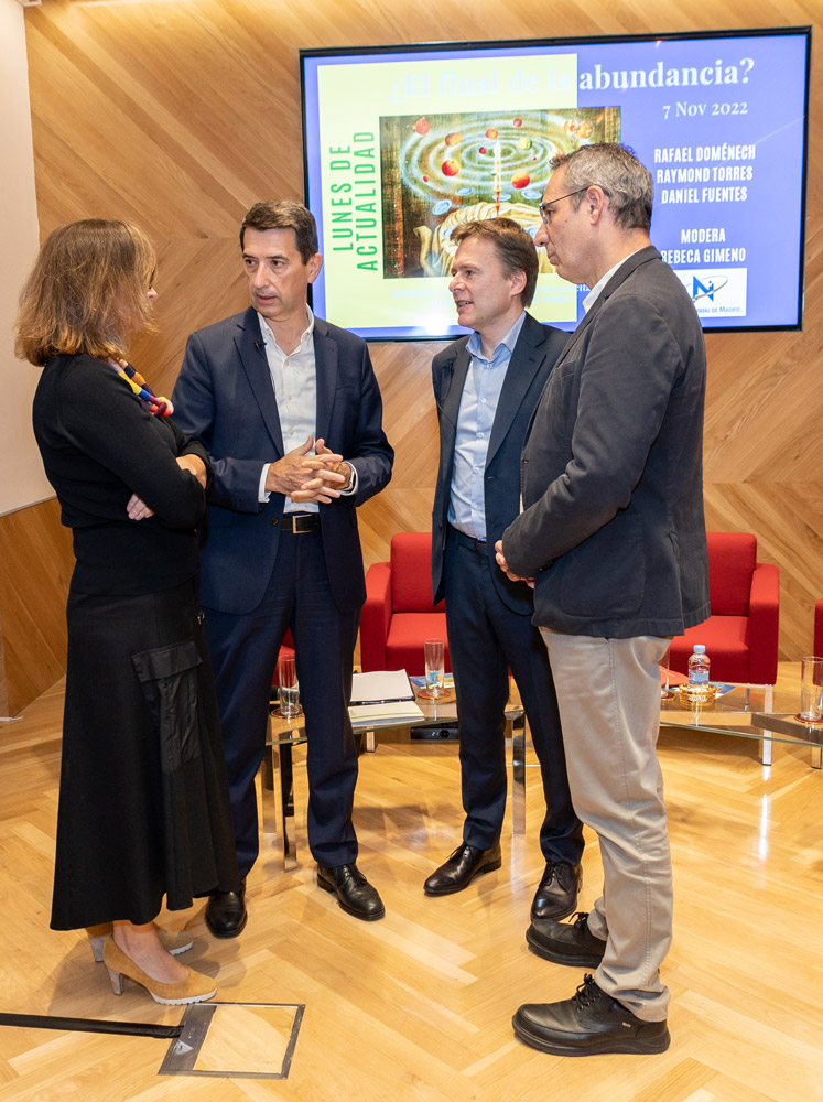 El pasado 7 de noviembre, dentro del ciclo de conferencias los Lunes de Actualidad, el Colegio Notarial de Madrid celebró el coloquio ¿El final de la abundancia? Riesgos económicos y escenarios contra la crisis. Intervinieron Rafael Doménech, director de Análisis Económico de BBVA Research; Raymond Torres, director de Coyuntura Económica de FUNCAS; y Daniel Fuentes, director de Kreab Research. El encuentro estuvo moderado por Rebeca Gimeno, economista y jefa de Economía del periódico NIUS. Los expertos analizaron la actual coyuntura económica en el contexto de la crisis energética y la guerra de Ucrania, y propusieron soluciones a los problemas con una mirada de largo plazo.
