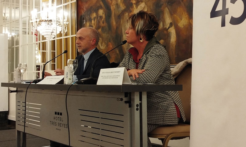 La Asociación IRACHE de Consumidores de Navarra organizó en el mes de noviembre una serie de charlas con motivo de los 45 años de su creación. El entonces decano y actual miembro de la junta directiva del Colegio Notarial de Navarra, Alfredo Aldaba, impartió una de estas sesiones en el Hotel Tres Reyes de Pamplona, en la que habló sobre cuestiones relacionadas con las herencias -cómo hacer testamento, cómo heredar, poderes y reparto- y resolvió las dudas de los consumidores sobre la gestión del patrimonio. Le acompañó en la mesa la directora adjunta de la Asociación, Susana Arizcun.