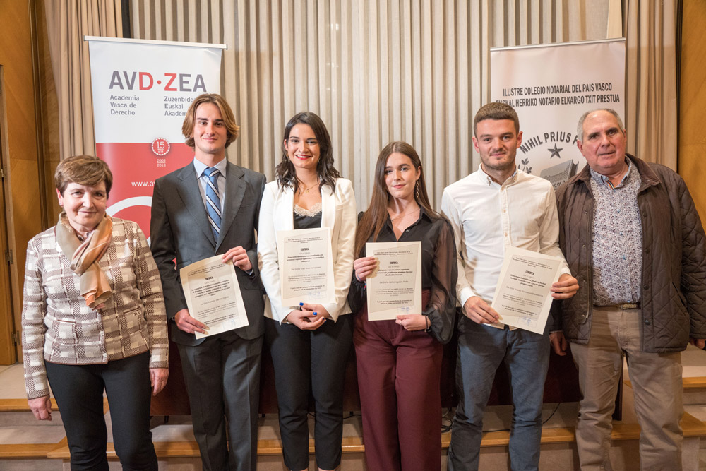 En el marco del acto de apertura del curso de la Academia Vasca de Derecho (AVD-ZEA) se entregaron los galardones de la séptima edición de los premios Adrián Celaya para Jóvenes Juristas.