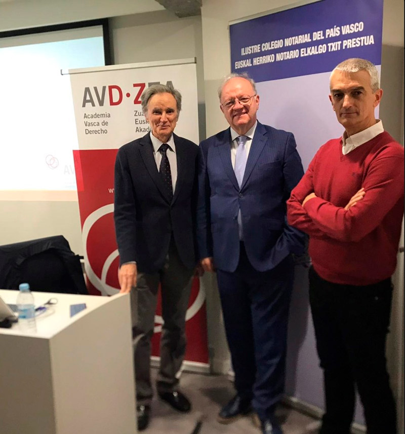 Entre el 18 de abril y el 30 de mayo se celebró en la delegación del colegio notarial en San Sebastián el curso Sucesión hereditaria en la Comunidad Autónoma del País Vasco y planificación de la transmisión del patrimonio familiar, organizado en colaboración con la Academia Vasca de Derecho (AVD).