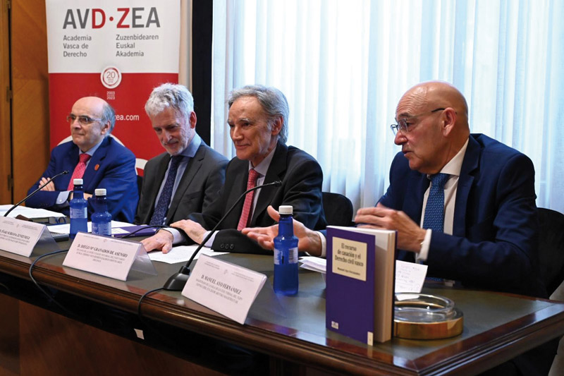 A mediados de junio tuvo lugar el acto de presentación del quinto número de la colección Minor Bilduma, que edita el Colegio Notarial del País Vasco, la Academia Vasca de Derecho (AVD-ZEA) y la editorial Dykinson. Este último número, titulado El recurso de casación y el Derecho civil vasco, ha sido escrito por el magistrado Manuel Ayo, quien estuvo acompañado en la presentación por el decano del colegio notarial vasco, Diego Granados; el presidente de la AVD-ZEA, Andrés Urrutia; el presidente del Tribunal Superior de Justicia del País Vasco, Iñaki Subijana -autor del prólogo del libro-; y la fiscal superior Carmen Adán; así como por otros compañeros de profesión, juristas, familiares y amigos.