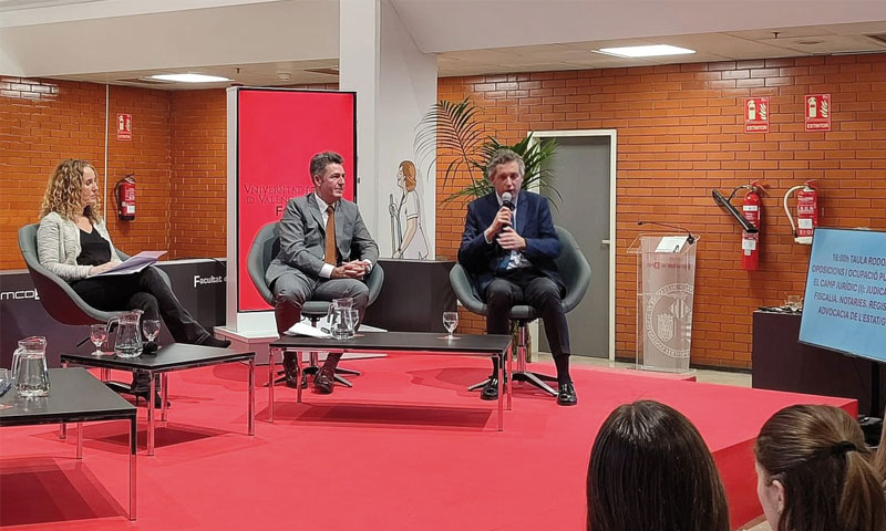 Junto al notario, y bajo la moderación de Rosa Marúa Lapiedra -coordinadora de Grado en la UV-, intervinieron la jueza Rut Blasco; el fiscal superior de la Fiscalía de la Comunitat Valenciana, José Francisco Ortiz Navarro; el abogado del Estado jefe de la CV, Francisco Parra; y la registradora Carmen Montesinos.
