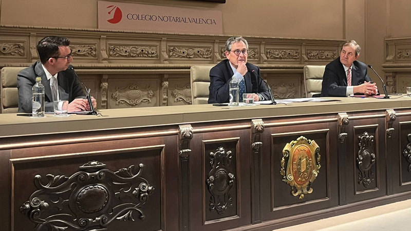El ponente estuvo acompañado en la mesa por el decano del colegio, José Carmelo Llopis, y el notario y director de la Cátedra, Ubaldo Nieto. Junto a los miembros de la junta directiva del colegio notarial autonómico, estuvieron presenten numerosas autoridades del mundo político, jurídico, universitario y profesional; entre otros, la vicepresidenta de la Generalitat Valenciana y consellera de Servicios Sociales, Igualdad y Vivienda, Susana Camarero; la consellera de Justicia y Administración Pública, Nuria Martínez Sanchis; el fiscal superior de la Comunidad Valenciana, José Francisco Ortiz Navarro; y el vicepresidente primero de la Mesa de Les Corts, Alfredo Castelló.