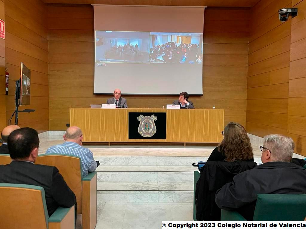 Los notarios Eduardo García Parra y Francisco Belda impartieron la sesión inaugural del curso, que fue retransmitida en las delegaciones colegiales de Castellón y de Alicante.
