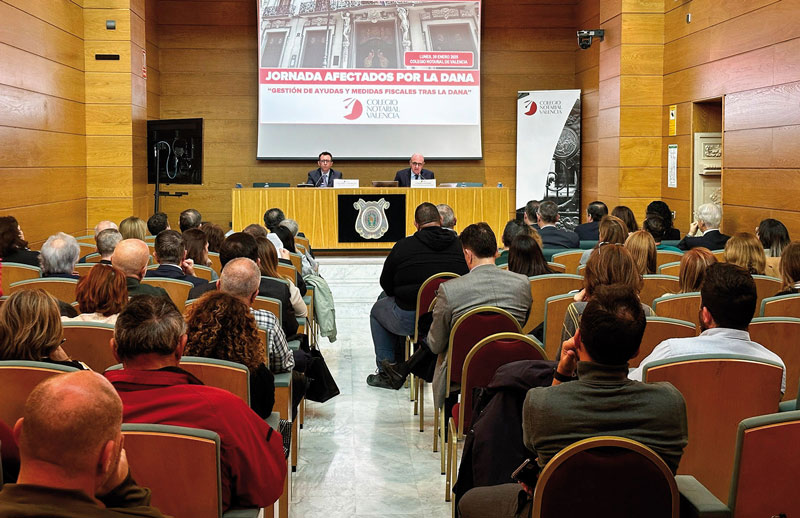 Jornadas informativas. El Colegio Notarial de Valencia celebró en enero una jornada informativa para todos los vecinos y empresarios afectados por los efectos de la dana, a su paso por las diferentes poblaciones de la provincia de Valencia, con el objetivo de poder ampliar el asesoramiento prestado a la población damnificada sobre la gestión de las ayudas y medidas fiscales aprobadas.