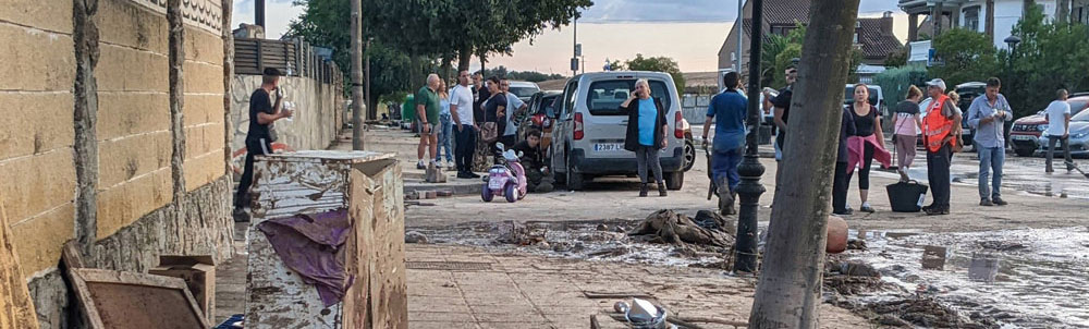 Notarías afectadas. Las notarías, como otros establecimientos y viviendas de las localidades más afectadas, sufrieron las consecuencias de las inundaciones. Sobre todo, las ubicadas en las localidades de Albal, Aldaia, Benetúser, Catarroja o Guadassuar, entre otras. Ignacio Núñez Echevarría, notario de Aldaia explica su experiencia y señala cómo “afortunadamente mis trabajadores y yo no tenemos que lamentar daños personales, pero la oficina notarial fue literalmente arrasada por la riada”. Por su parte, Pilar Samper, notaria de Benetússer, señala que por suerte “ese día cerramos pronto y no vivimos el momento angustioso de la llegada de la avalancha de agua”. No fue así en el caso de la notaría de Mónica Piqueres, en Guadasuar, que recuerda que “por asuntos personales, habíamos aplazado las firmas de la tarde al día siguiente. Desafortunadamente, una de las empleadas se encontraba en el interior del local. Fueron momentos de verdadera angustia, hasta que conseguimos el teléfono de un vecino del edificio que pudo rescatar a la oficial con la ayuda de otros vecinos, cuerdas y escaleras”. Según Piqueres “el agua y el barro arrasaron absolutamente todo lo que alcanzaron, hasta la altura de poco más de un metro. No obstante, el sufrimiento que experimentamos tratando de socorrer a la oficial me hizo relativizar la importancia de los daños materiales, que pueden resultar insignificantes frente a los personales”.