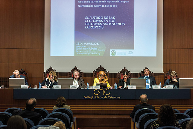 La mesa contó con la intervención del notario de Barcelona y profesor en la Universidad Internacional de Cataluña (UIC), Jesús Gómez Taboada; junto con Philippe Potentier, notario de Francia; Federico Tassinari, notario de Italia; Corinne Zimmerli, notaria de Suiza; y Fanny Orsini, notaria escribana del Reino Unido; Valentina Rubertelli, presidenta de la CAE y Elena Lauroba, catedrática de Derecho Civil de la Universitat de Barcelona, quienes expusieron la situación de las legítimas en sus respectivos países y su futura evolución.
