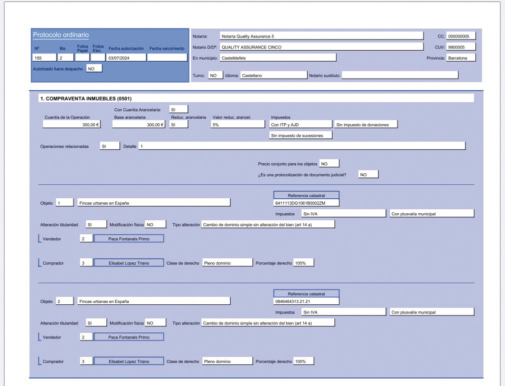 ¿Para qué sirve esta ficha? Una vez que el notario ha autorizado un acto o negocio se elabora este documento electrónico y “a través de nuestros programas informáticos se envía la ficha a las administraciones públicas. Fundamentalmente se le hace llegar a la hacienda o agencia tributaria de la comunidad en cuestión”, explica la portavoz. “Así la autonomía puede proceder a la liquidación o a la comprobación de la liquidación de los impuestos que afectan a esa operación”, señala Barea.
