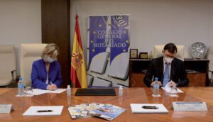 José Ángel Martínez Sanchiz, presidente del Consejo General del Notariado (CGN), y Soledad Atienza, decana de IE Law School de IE University, suscribieron a primeros de marzo un acuerdo de cooperación entre ambas instituciones en materia de formación e investigación.
