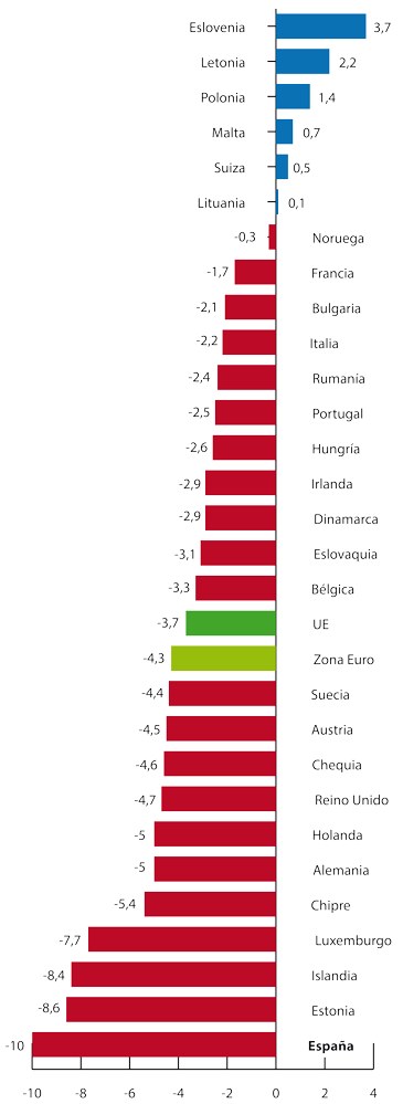 Según Eurostat, la brecha salarial entre hombres y mujeres se redujo en 3,7 puntos porcentuales ente 2012 y 2022. La variación no es uniforme: en Eslovenia, Letonia, Polonia, Malta, Suiza y Lituania, aumentó la diferencia entre 0,1 y 3,7 puntos. El mayor descenso se dio en España (10 puntos), seguida de Estonia (8,6 puntos), Islandia (8,4 puntos) y Luxemburgo (7,6 puntos porcentuales).