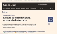 -Cinco Días: España se enfrenta a una economía destrozada. Las previsiones de los datos económicos, bajada del PIB, aumento del desempleo, del déficit y de la deuda pública no auguran nada bueno a corto y medio plazo.