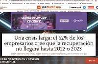 -Libre Mercado: Una crisis larga: el 62% de los empresarios cree que la recuperación no llegará hasta 2022 o 2023. El diario recoge los resultados del informe de CEOE y la consultora KPMG La empresa española ante la Covid-19, un sondeo que pulsa la opinión de miles de empresarios y directivos.