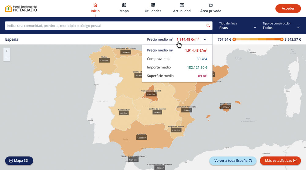 ¿Por cuánto se vende un piso en mi zona? ¿Qué barrios son más asequibles en mi ciudad? ¿Es ahora buen momento para comprar o vender? Estas son algunas de las preguntas que nos surgen al afrontar una de las decisiones más trascendentales: adquirir o poner a la venta una vivienda, la preocupación más acuciante para los españoles en la actualidad. Para aportar claridad y respuestas a este proceso, el Consejo General del Notariado (CGN) lanza el Portal Estadístico del Notariado, una plataforma dinámica y visual que permite consultar, a partir de las operaciones firmadas ante notario, el precio real de la vivienda.