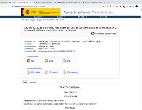 Ley 18/2011, de 5 de julio, reguladora del uso de las tecnologías de la información y la comunicación en la Administración de Justicia.
