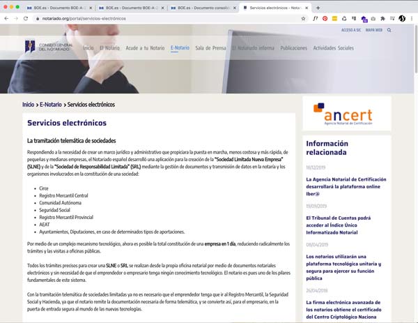Servicios electrónicos ofrecidos por el notariado. Relación detallada de los trámites electrónicos que se realizan desde las notarías españolas.
