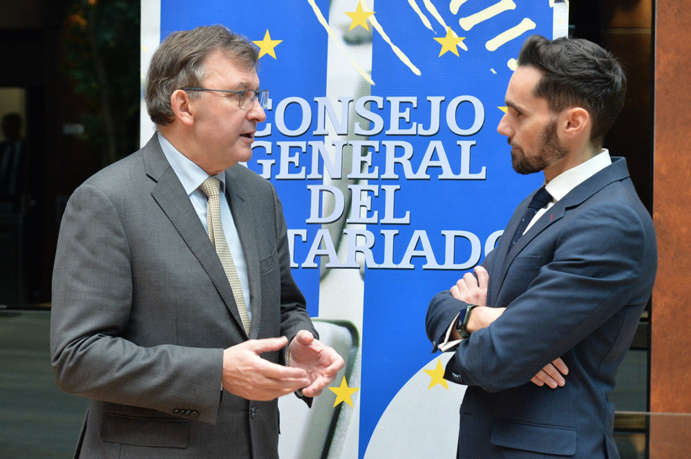 El representante ministerial mantuvo una reunión con el presidente del Notariado, José Ángel Martínez Sanchiz, y los miembros de la Comisión Permanente y del Órgano Centralizado de Prevención (OCP) de blanqueo de capitales del Notariado.
