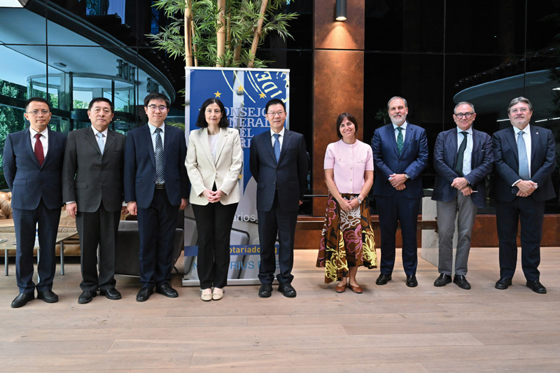 En el encuentro participaron los decanos e integrantes de la Comisión Permanente del CGN: Carmen Rodríguez Pérez (Murcia), Ángel Nanclares (País Vasco), Leopoldo Martínez de Salinas (Castilla y León) y Alfonso Cavallé (Canarias). Tras la firma de un memorándum de entendimiento, los integrantes de la delegación china pudieron conocer las instalaciones del Centro Tecnológico del Notariado en Madrid.