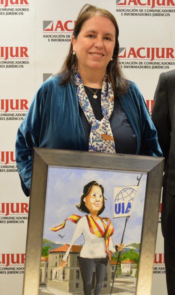 –Almudena Arpón de Mendívil. Es un premio importante para mí. Primero, porque me lo concede la Asociación de Comunicadores e Informadores Jurídicos, que juega un papel muy relevante no sólo para los profesionales del derecho sino para toda la sociedad. En un momento en que la desinformación y las noticias falsas están ganando tanto terreno, debemos poner en valor la tarea de los profesionales y medios de comunicación rigurosos como los que integran ACIJUR. En la IBA hemos acometido proyectos importantes en defensa de la independencia de medios y la protección de periodistas, por ejemplo, participando en el High Level Panel of Legal Experts on Media Freedom. Además, ACIJUR me concede el premio por haber accedido a la presidencia de la IBA siendo socia de Gómez-Acebo & Pombo. Simultanear las dos carreras no ha sido fácil. La IBA desarrolla una actividad impresionante y, sobre todo, tiene una misión crucial: contribuir a la estabilidad y a la paz global, al progreso, en definitiva, al Estado de Derecho. Yo he asumido el compromiso de seguir trabajando en esa dirección, poniendo de relieve la contribución de la abogacía a la sociedad con un proyecto específico en ese sentido y perseverando, aún más, en la defensa del Estado de Derecho. Finalmente, siempre recordaré este premio con mucha ilusión por haberlo recibido ex aequeo con Urquiola de Palacio, una grandísima y muy querida profesional que preside ahora la Union International d’Avocats. Sí, dos abogadas españolas, a la vez, al frente de las dos mayores asociaciones de la abogacía mundial. No es casual.