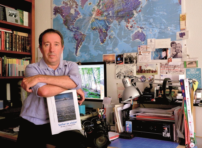 Nuestro entrevistado cuenta con una amplia trayectoria profesional conseguida tras más de treinta años detrás del objetivo. Sin embargo, una de sus principales virtudes no se encuentra en su currículo: contar con un gran círculo de amistades. Y esa virtud hizo que 88 periodistas le enviaran durante el reciente confinamiento –altruistamente- los textos que conforman el libro Soñar es viajar, 88 viajes en confinamiento (editado por la Fundación Notariado), cuya recaudación se destinará a la investigación contra el coronavirus realizada por el Instituto de Salud Carlos III.