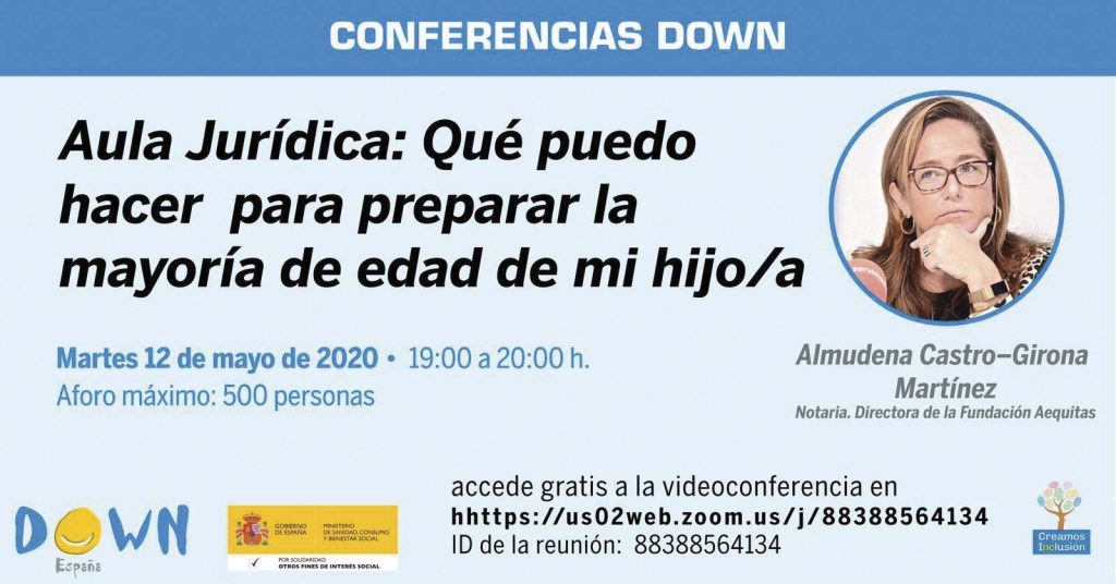 Durante el confinamiento proliferaron las iniciativas de formación realizadas con videoconferencia; la tecnología de nuevas aplicaciones –como Zoom– popularizó el vocablo webinar (o seminario virtual). El sector de la discapacidad también se sumó a estos cursos. De la mano de Down España, la Fundación Æquitas puso en marcha el Aula Jurídica Online, en la que varios notarios aclaran dudas sobre temas legales relacionados con la discapacidad.