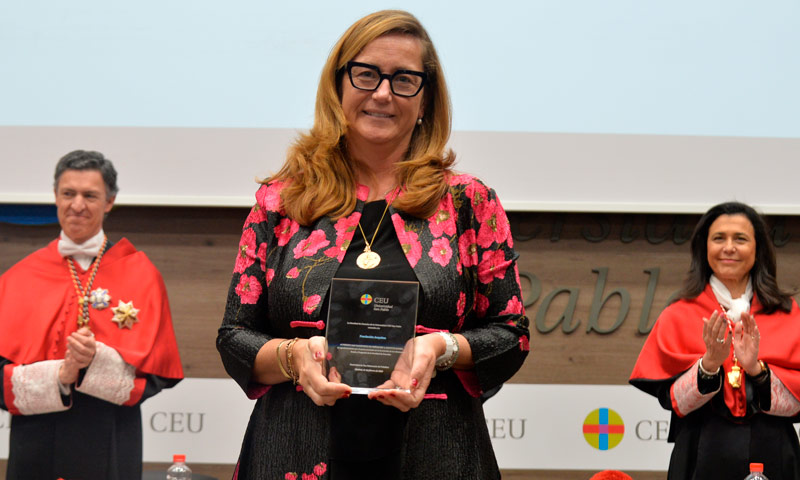 La directora de ‘la ONG del Notariado’, Almudena Castro-Girona, recibió uno de los galardones «dada la valiosa colaboración que la facultad de Derecho ha encontrado en la Fundación Aequitas, de gran interés para todos nuestros alumnos».