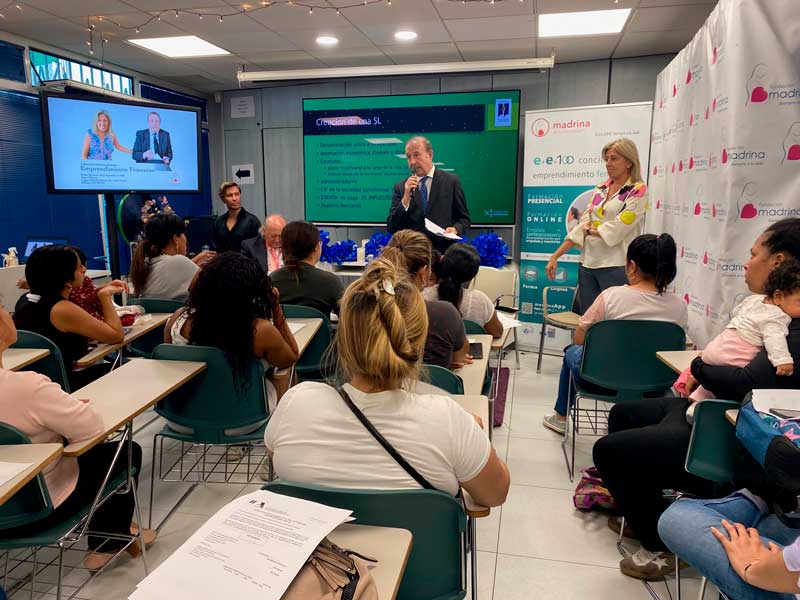 El pasado 20 de septiembre, el Consejo General del Notariado y la Fundación Notariado colaboraron con la Fundación Madrina en uno de sus Talleres de Emprendimiento, una iniciativa destinada a mujeres y familias en situación de riesgo. En la sesión participaron Carmen Galán, notaria de Ejea de los Caballeros (Zaragoza); y José Manuel Benéitez, notario de Soria, quienes impartieron una charla titulada El reto de emprender. El notario te ayuda.