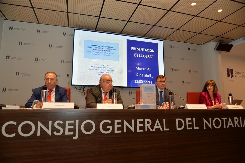 A mediados de abril, tuvo lugar en la sede del Consejo General del Notariado (CGN) la presentación del libro Reformas legislativas para el apoyo a las personas con discapacidad, de la editorial Dykinson y la Fundación Notariado. El acto estuvo presidido por José Ángel Martínez Sanchiz, presidente del CGN, y fue clausurado por Tontxu Rodríguez, secretario de Estado del Ministerio de Justicia. Asimismo intervinieron dos de los coordinadores de la obra: los catedráticos Mª Ángeles Egusquiza y Francisco Lledó.