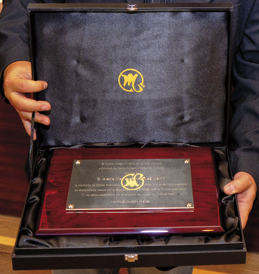 «Son ustedes los que deberían ser los homenajeados”, aseguró Lourdes Tatiana Rodríguez, concejala de Tazacorte. “Estamos tremendamente agradecidos por la ayuda prestada. Los notarios han mostrado una calidad humana increíble. Les llevamos a todos en el corazón».