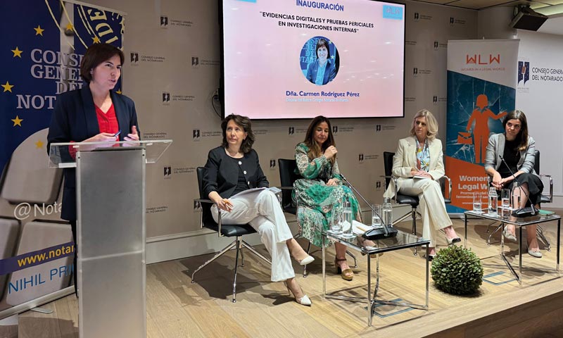 El Consejo General del Notariado acogió en el mes de mayo la celebración de la jornada Evidencias digitales y pruebas periciales en investigaciones internas, organizada por la asociación Women in a Legal World (WLW). La decana del Colegio Notarial de Murcia, Carmen Rodríguez, inauguró la sesión, en la que se compartieron buenas prácticas y recomendaciones a tener en cuenta por las empresas en los procedimientos ante infracciones cometidas por los empleados.