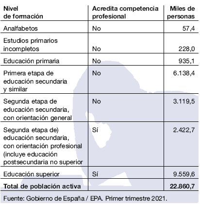 A la vez, de los casi 23 millones de población activa que hay en España, más de 10 millones no pueden acreditar formalmente sus competencias, aunque las hayan adquirido a través de la experiencia laboral o por vías no oficiales. Esto limita sus oportunidades de promoción profesional y les hace muy vulnerables si se quedan sin trabajo.