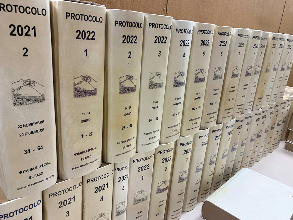 Tras casi dos años de la erupción del volcán de La Palma ha concluido satisfactoriamente el trabajo realizado en las tres notarías especiales que se abrieron para atender a los afectados, instaladas en los ayuntamientos de El Paso, Los Llanos de Aridane y Tazacorte, con la ayuda económica y tecnológica del Consejo General del Notariado (CGN). Todos los documentos autorizados por los notarios desplazados a La Palma se han incorporado en un protocolo especial, depositado en el Archivo General de Protocolos de Los Llanos de Aridane.