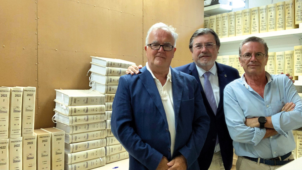 Recientemente los decanos de los colegios notariales de Canarias, Cataluña y Valencia; Alfonso Cavallé, José Alberto Marín y Francisco Cantos, respectivamente, que fueron los primeros voluntarios en trasladarse a la isla para poner en marcha las notarías especiales; han depositado el protocolo especial en el Archivo General de Protocolos del distrito de Los Llanos de Aridane, concluyendo de esta manera la labor realizada en las notarías especiales.