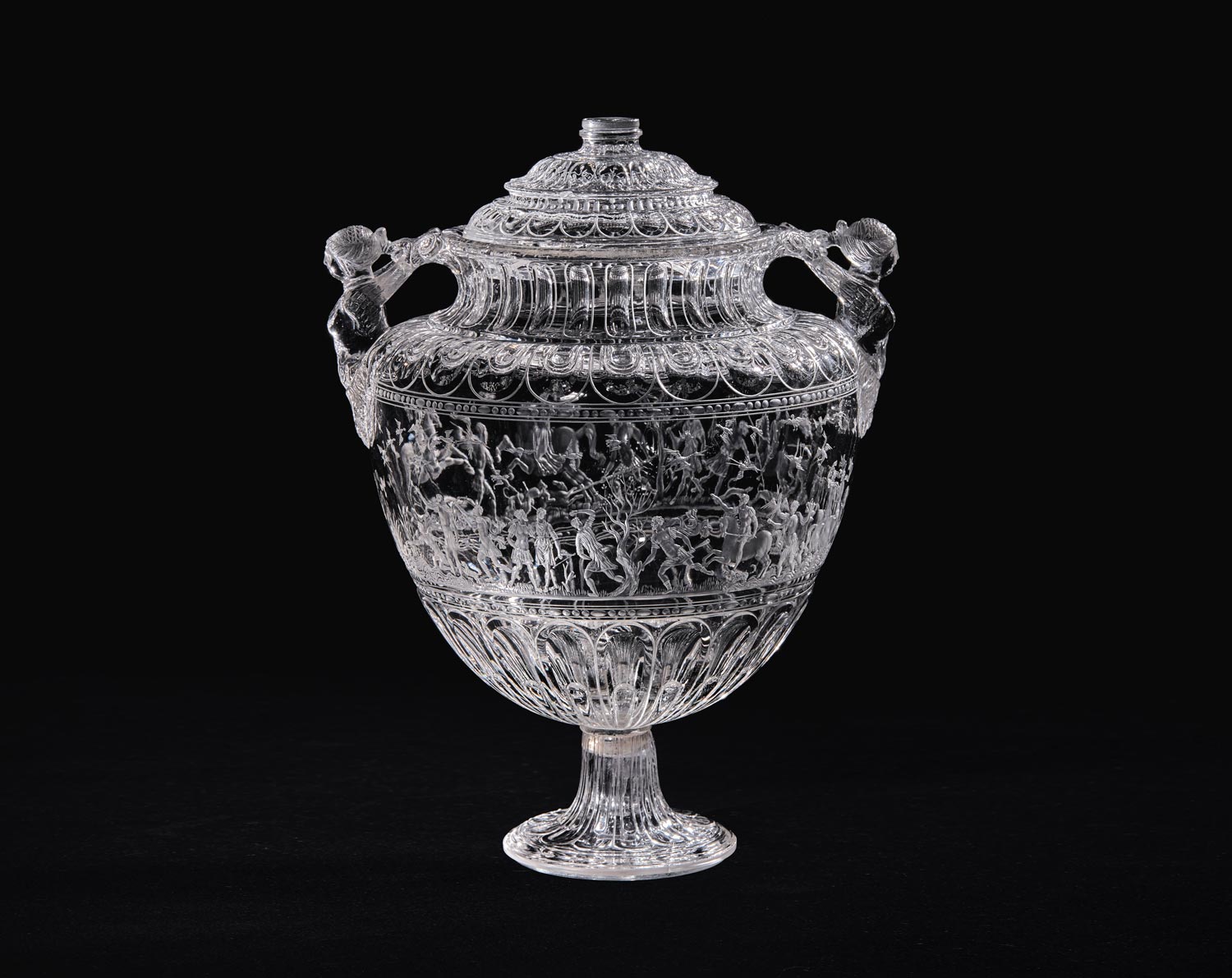El cuarzo con el que está realizado se consideraba una gema. Un bolo blanco y limpio, sin pajas ni jardines, se apreciaba como una rareza de gran valor. Considerado hielo solidificado procedente de las entrañas de la tierra, hasta el siglo XVIII fue el único material completamente transparente, y lo suficientemente duro, para poder ser tallado. El trabajo de estas piedras se centraba en Milán, ciudad productora de lujo y belleza, y con una antigua tradición lapidaria. Durante el s. XVI, coincidiendo con la estancia de Leonardo da Vinci, los talleres desarrollaron importantes avances tecnológicos, alcanzando su momento de mayor esplendor a partir de la segunda mitad del siglo. Además, los Alpes, por la zona de San Gotardo, abastecían a los talleres de cuarzos de gran tamaño y calidad. De entre los talleres lapidarios, compuestos en su mayoría por sagas familiares, destaca el autor de este vaso, Francesto Tortorino, gran “intagliadore” de cuarzo, de trabajo lento, minucioso y perfeccionista.