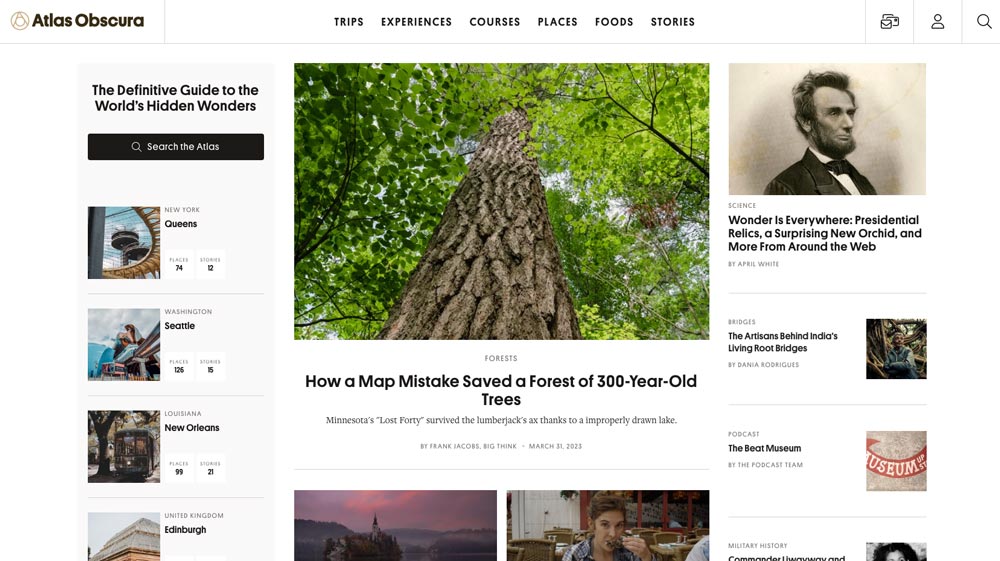 Un paso decisivo a la popularización de estos temas lo dio el crecimiento de la revista online Atlas Obscura, que decidió ampliar su ámbito a sitios en líneas generales poco conocidos y que hubieran pasado totalmente inadvertidos al público y las guías de viajes. Estructurado en notas breves y con un fondo de material enorme gracias a su red de colaboradores por todo el mundo, Atlas Obscura ya organiza incluso viajes.