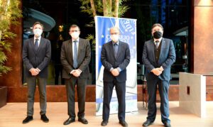 De izquierda a derecha: Ramón Casilda, coordinador de las jornadas; José Ángel Martínez Sanchiz, presidente del CGN; Rafael Garranzo, director general para Iberoamérica y el Caribe del Ministerio de Asuntos Exteriores, Unión Europea y Cooperación, y Alfonso Cavallé, delegado para América del CGN y director de las jornadas.