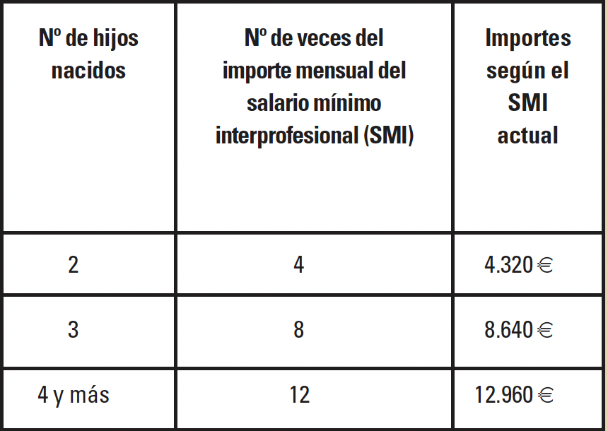 • Ayuda por parto o adopción múltiple (2 o más hijos). Consiste en un único pago por las siguientes cuantías en 2023: